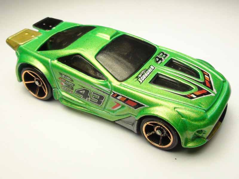 Class: Modified, S Chassis: Stock, Plastic Wheels: FTE L x W: 7.3cm x 3.1cm Weight: 92g Maker: Hot Wheels Mods: FTE wheels and weight added External Mods: Black and gold stripes