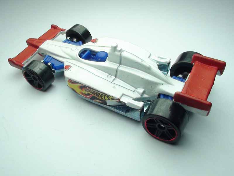Class: Stock, Formula R Chassis: Stock, Metal Wheels: HW Pie 5 L x W: 7.6cm x 3.1cm Weight: 44g Maker: Hot Wheels Mods: None External Mods: Custom Paint added