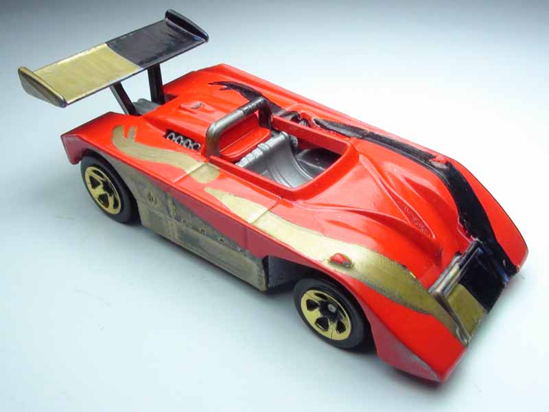 Class: Stock, Formula R Chassis: Stock, Plastic Wheels: HW 5 Spoke L x W: 7.5cm x 3.2cm Weight: 35g Maker: Hot Wheels Mods: None External Mods: Black and gold added