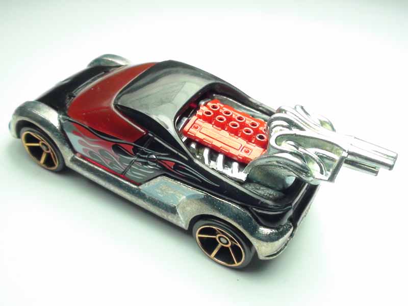 Class: Modified, Concept Chassis: Stock, Plastic Wheels: FTE L x W: 7.1cm x 3.1cm Weight: 93g Maker: Hot Wheels Mods: FTE wheels and weight added External Mods: New engine added to back