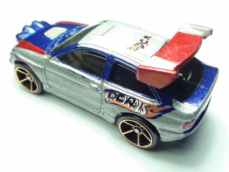 Class: Modified, Rally Chassis: Stock, Plastic Wheels: FTE L x W: 7.0cm x 3.1cm Weight: 114g Maker: Hot Wheels Mods: FTE wheels and weight added External Mods: Rear wing and paint job