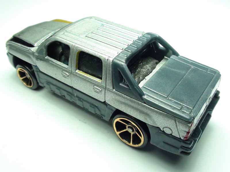 Class: Modified, Rally Chassis: Stock, Plastic Wheels: HW FTE L x W: 7.6cm x 2.8cm Weight: 103g Maker: Matchbox Mods: FTE wheels and weight added to MBX Avalanche External Mods: Black and gold stripes